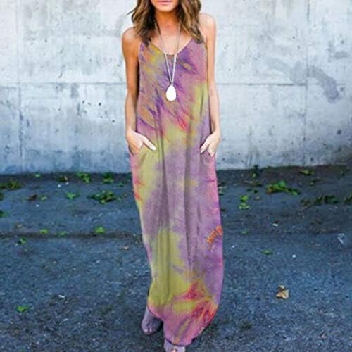 Latinday Womens Summer Casual Floral Printed Bohemian Spaghetti Strap Floral Long Maxi Dress With Pockets Sports Outdoors